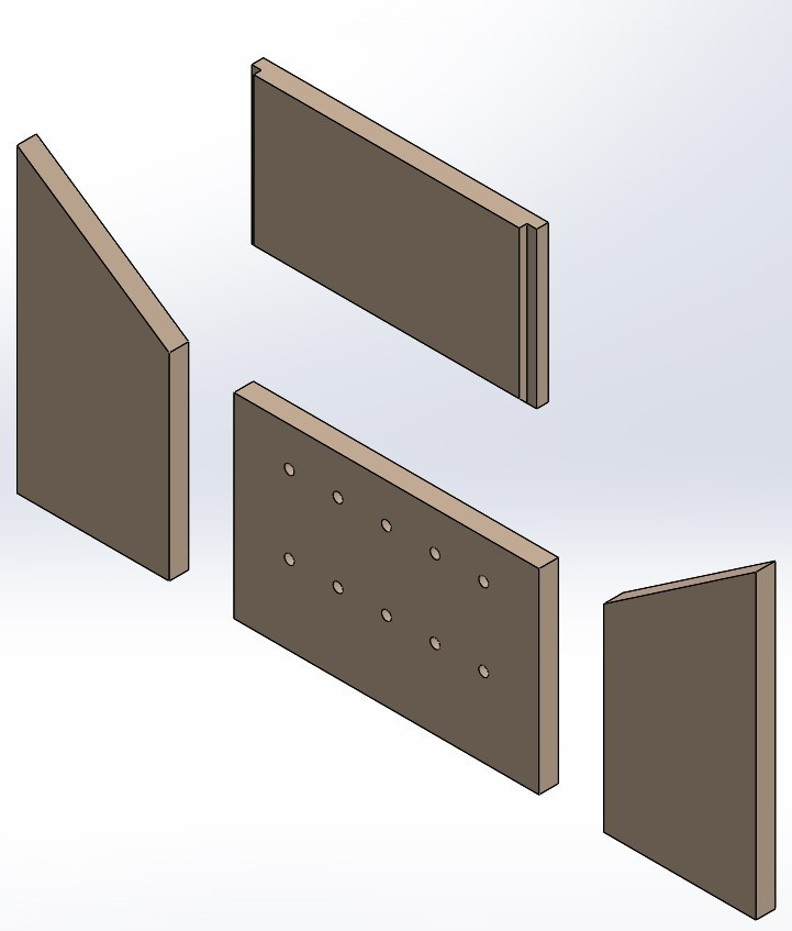 Maße: Material Vermiculite Seitenstein links (305/465 x 235 x 30 mm), Seitenstein rechts (305/465 x 235 x 30 mm) Rückwandstein mit Bohrungen (471 x 302 x 30 mm) Zugumlenkung (410/440 x 237 x 30 mm)