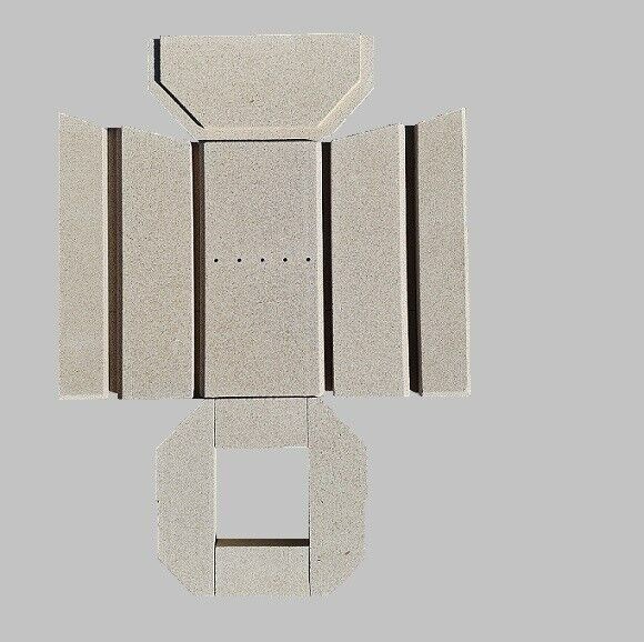 Maße: Bodenstein links (86 x 285 x 30 mm), Bodenstein rechts (86 x 285 x 30 mm) Bodenstein hinten (133 x 71 x 30 mm), Bodenstein vorne (133 x 71 x 30 mm) Seitenstein links vorne (75 x 442 x 25 mm), Seitenstein rechts vorne (75 x 442 x 25 mm) Seitenstein links hinten (113 x 410 x 25 mm), Seitenstein rechts hinten (113 x 410 x 25 mm) Rückwandstein (188 x 383 x 25 mm) Zugumlenkung (349 x 185 x 30 mm)