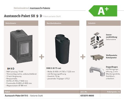 Austausch Paket Schmid SH 9 D mit Nachheizkasten Stahl, Auskleidung und Doppelbogen